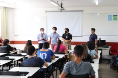 Paralelamente à reunião, um encontro com as lideranças estudantis do campus foi organizado pelo pró-reitor de Ensino, Carlos Bento, e pelo diretor de Assuntos Estudantis, Paulo Lourenço. Os dois puderam conhecer representantes de turma, membros das empresas juniores, da atlética e integrantes dos colegiados. “Como uma instituição que defende a diversidade, queremos que todo mundo conviva bem em um ambiente seguro, respeitoso e confortável”, declarou Bento. Também foram apresentados os programas e ações de apoio e permanência disponíveis para os estudantes. O reitor Kléber esteve na reunião e pôde se apresentar e falar rapidamente sobre o projeto da Reitoria Itinerante.