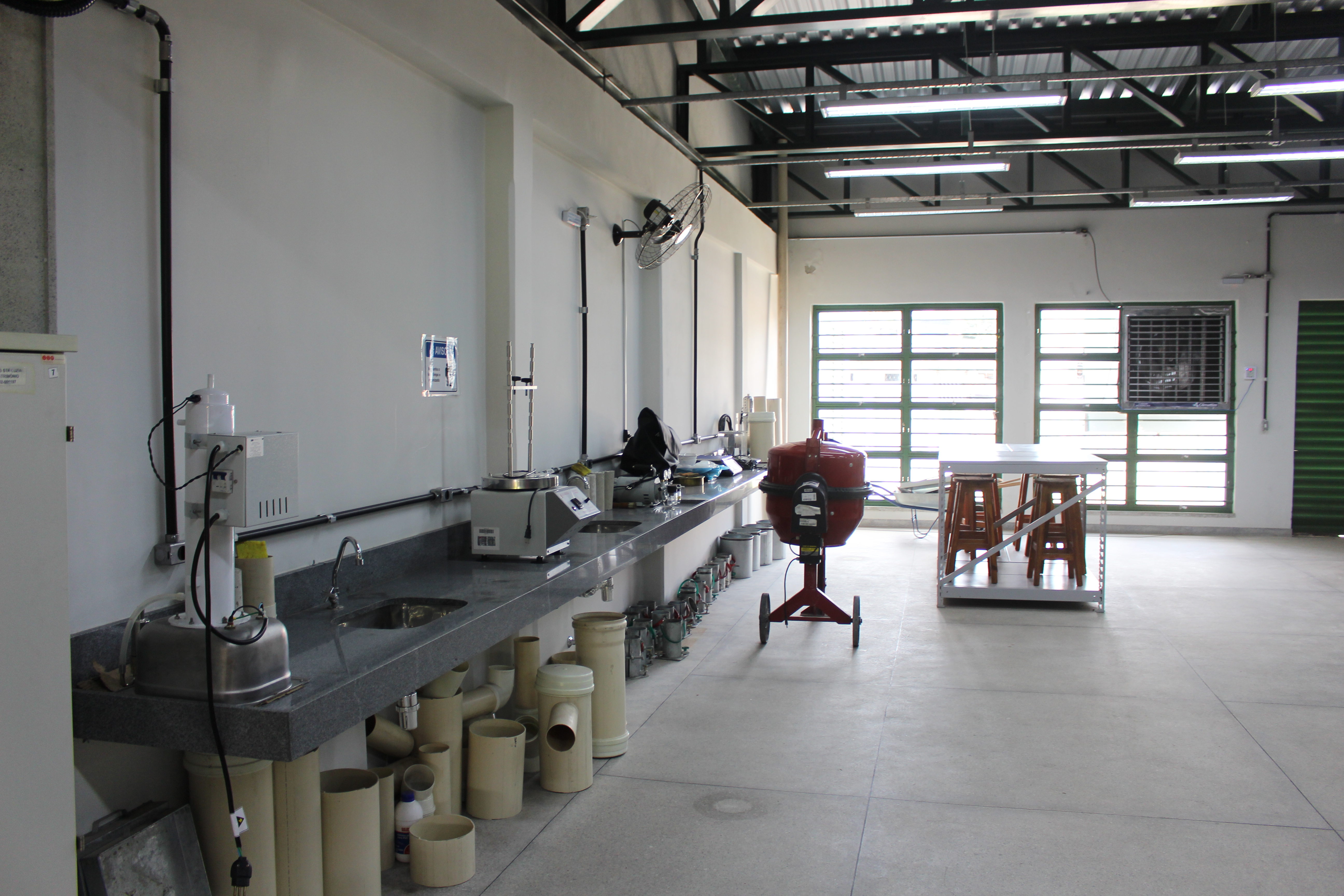 - Ferramentas e equipamentos diversos (peneiras, pás, carrinhos de mão, moldes para corpo de prova...)
